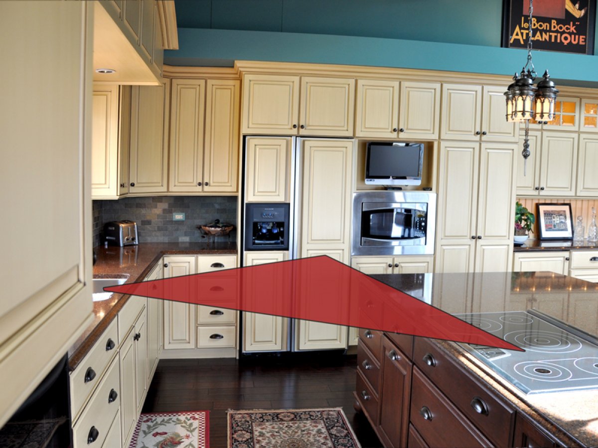 3. Žádné překážky (skříňky, pracovní ostrůvky) přetínající strany pracovního trojúhelníku.