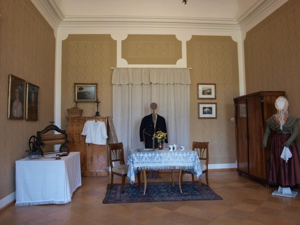 Sbírky, umístěné v interiérech západní části prvního patra zámku Kravaře